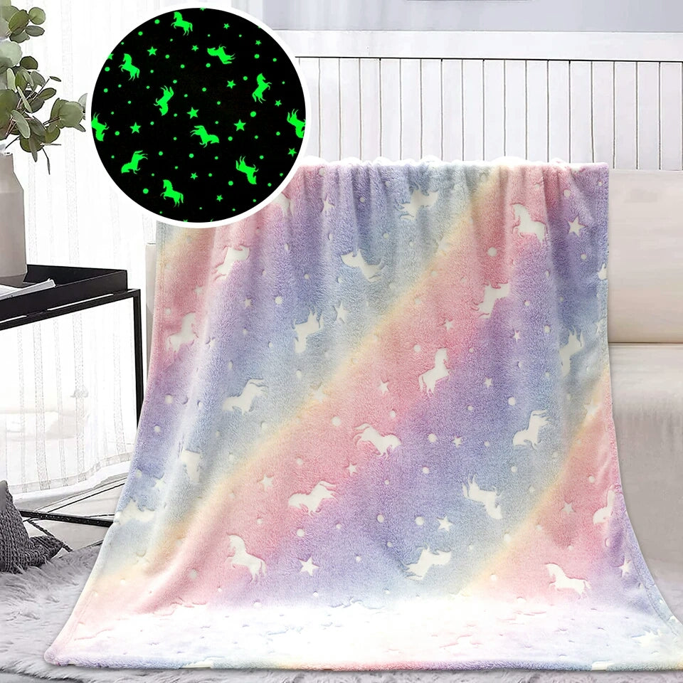 Luminous Unicorn Throw Blanket for Girls Plush Flannel Blanket