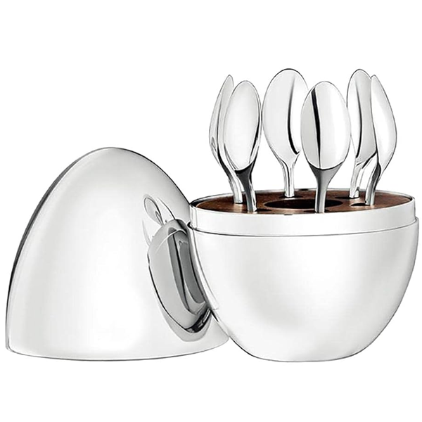 6Pcs Spoons With Luxury Egg Shape Cutlery Holder
