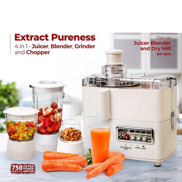 Regular price Rs.19,999.00 PKRSale price Rs.19,999.00 PKR Regular priceUnit price perRs.29,999.00 PKRSale Sold outDESCRIPTION: 1600ML, 400W, 100% copper motor Dry mincer & mill attachment, Non skid feet Detachable parts for easy cleaning Long life stainless steel and cutting blades...