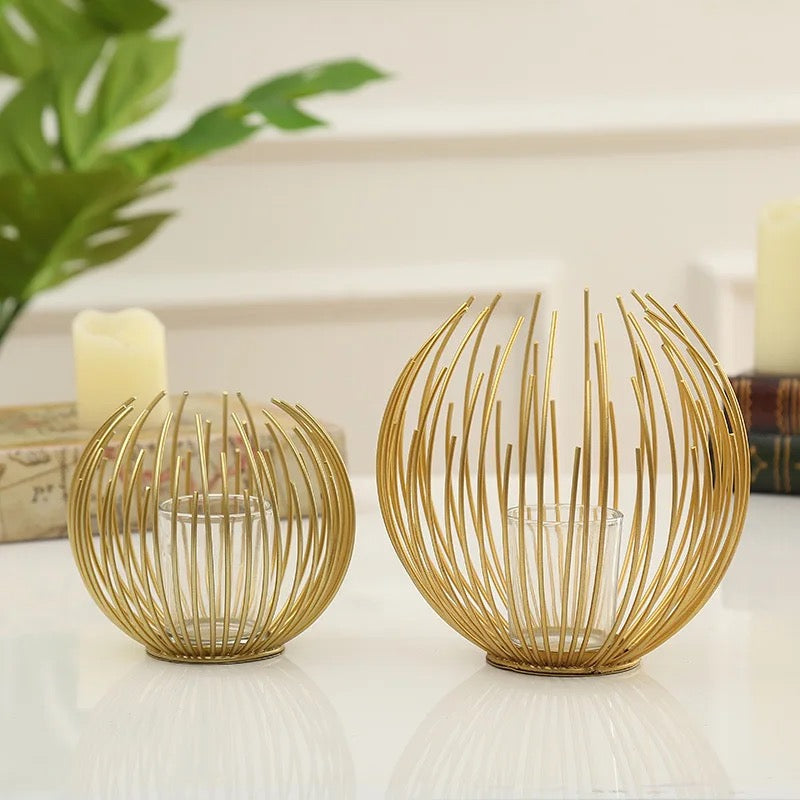 Candle Holder Gold Metal Iron Art Glass Nordic Style