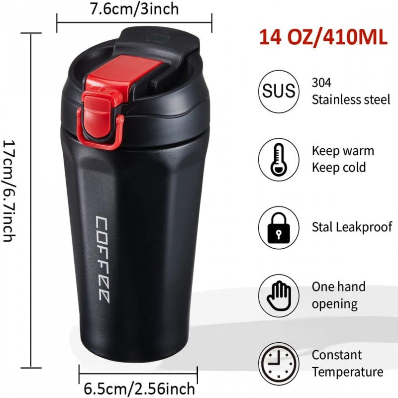 Perfect Size and Shape: With a 14oz capacity, this lightweight travel mug is designed for easy portability. Its ergonomic shape fits comfortably in your hand and is stylishly sleek, making it ideal for meetings, commuting, or outdoor adventures.