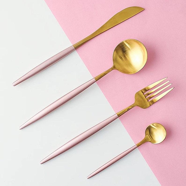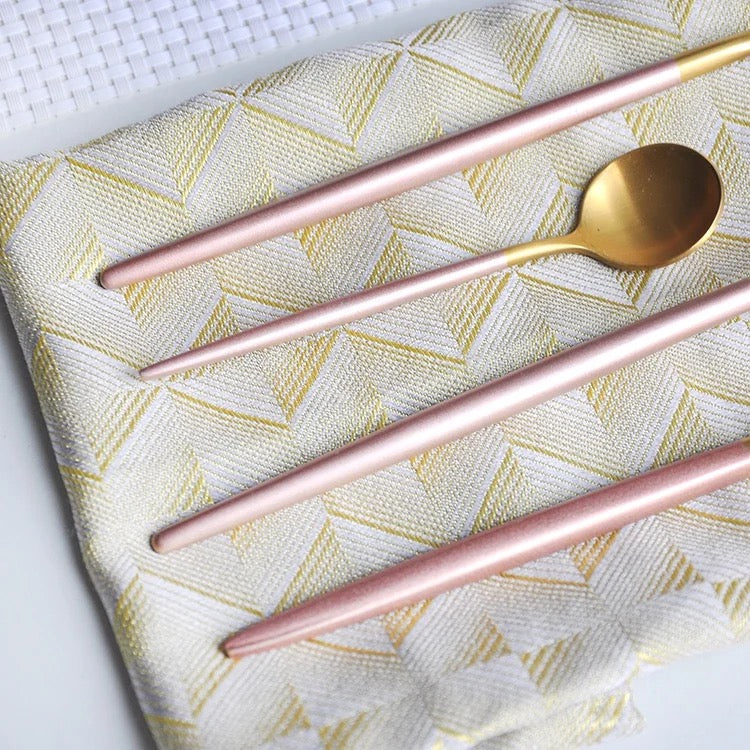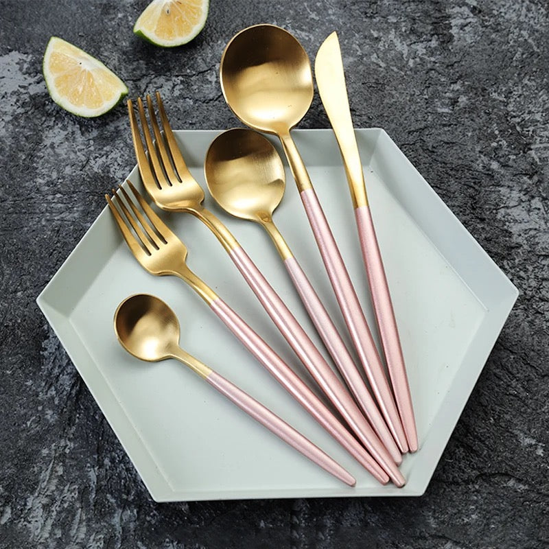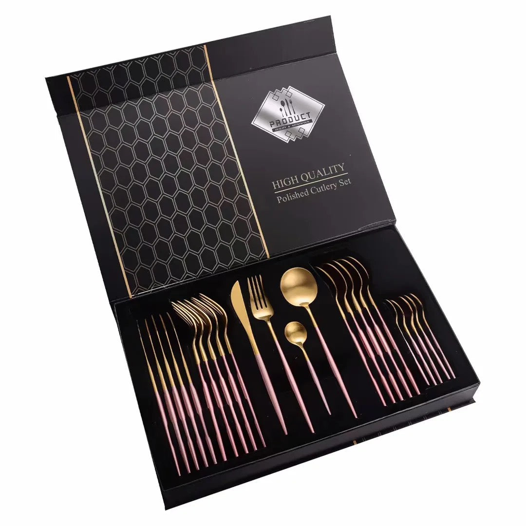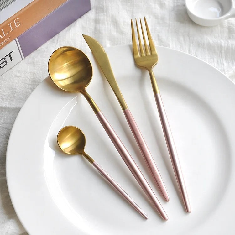 24 PCs Premium Steel Cutlery Set-Pink over Golden