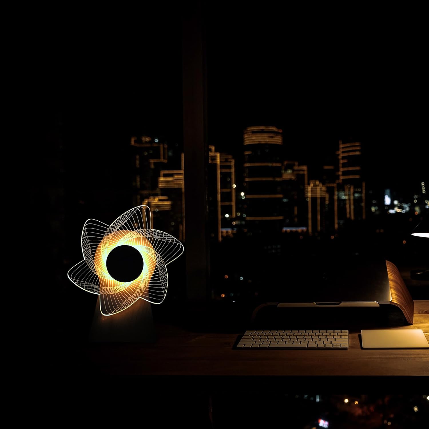 3D Windmill Night Light, Wooden Rotating Music Box, Wooden Ferris Wheel Table Lamp, Visual Illusion Optical Light