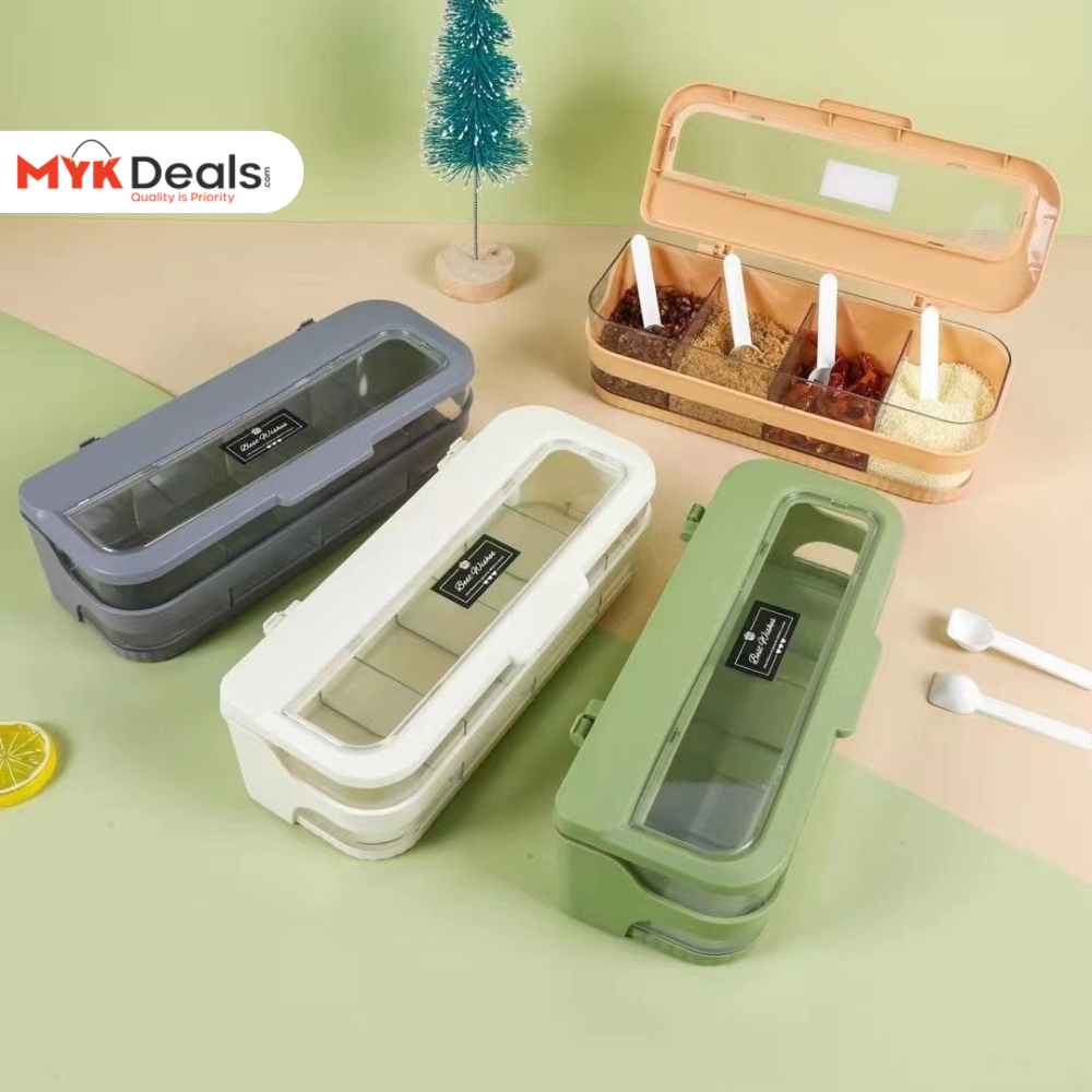 Product name:Seasoning Box 4-Grid Storage Multi-Grid Spice Box Condiment Dispenser Kitchen Seasoning Containers Spice Jars Herb & Spice Tools Product main material: Food grade plastic