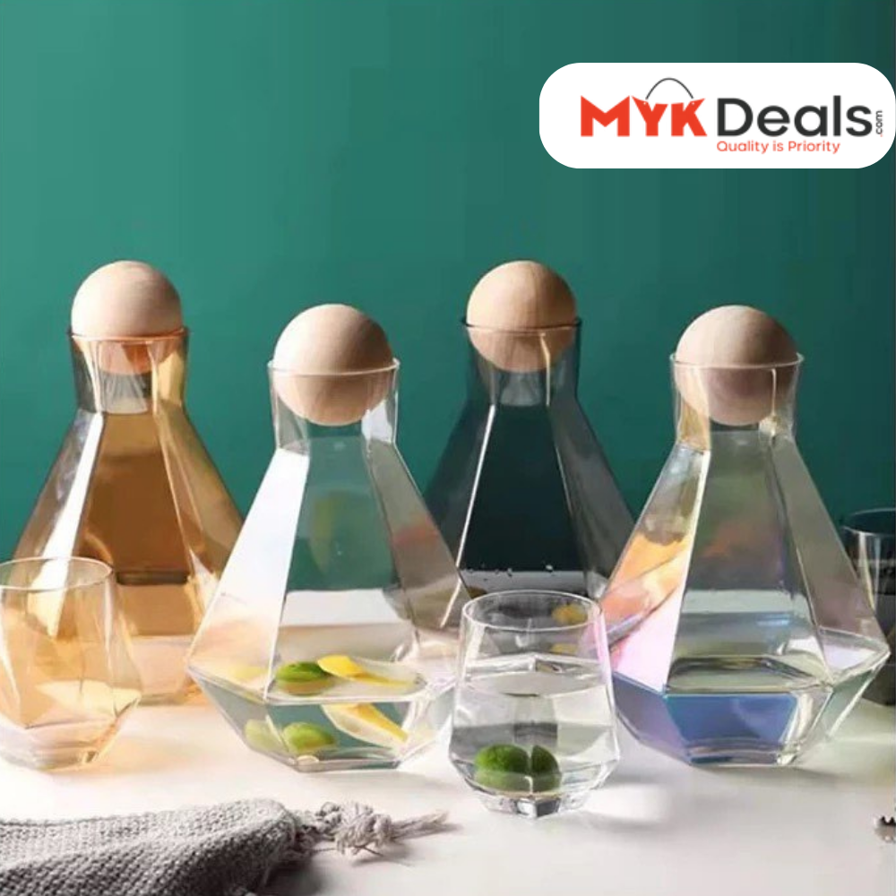 Unusual is gladly presenting you a nordic style glass set with cork lid jug -7 pcs. It's the most elegant and classic design you will not find out at any store for a drinking glass. It can hold both hot and cold drinks and can bear the heat. It is made up of high-quality glass that makes it more durable. When you drink water from a glass it gives you an extraordinary taste which you cant experience in plastic. This design is best for your distinguished guest and will increase the beauty of your dining table. The cork lid on the jug will help in the safety measure of drinking water and save it from pests, insects, and other small flies. Its extraordinary vintage-looking design will increase the charm of your dining table. It will be perfect serve-ware for your distinguished guests. So rush online order & enjoy our best selling product.