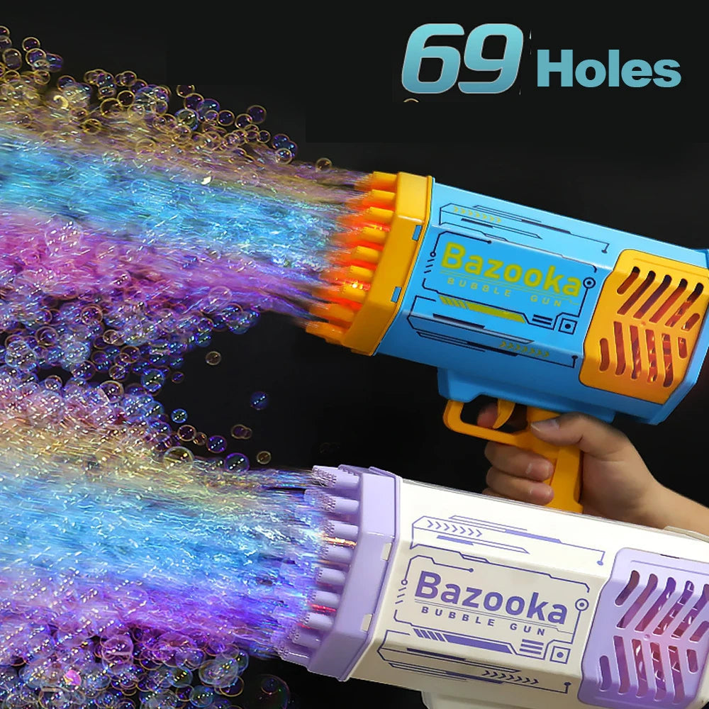 Thrilling Bubble Galore: Equipped with an impressive 69 holes, our bubble gun creates a whirlwind of thousands of colored bubbles per minute! Watch as these vibrant bubbles take flight, turning heads and stealing hearts wherever you go.