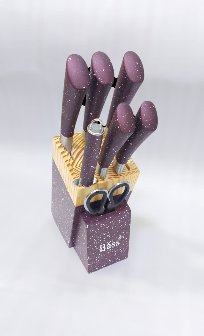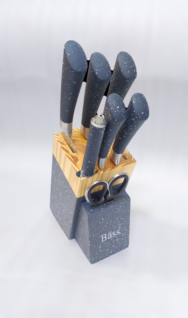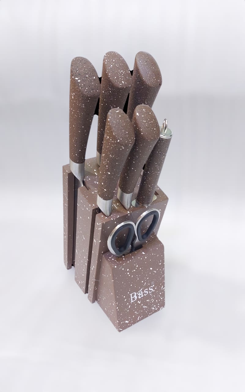 Add functionality and elegance to your kitchen with this premium Bass 8-piece knife set in a modern brown stone finish. Designed for both professional and home use, this set is ideal for precision cutting, chopping, and slicing while elevating your kitchen décor.