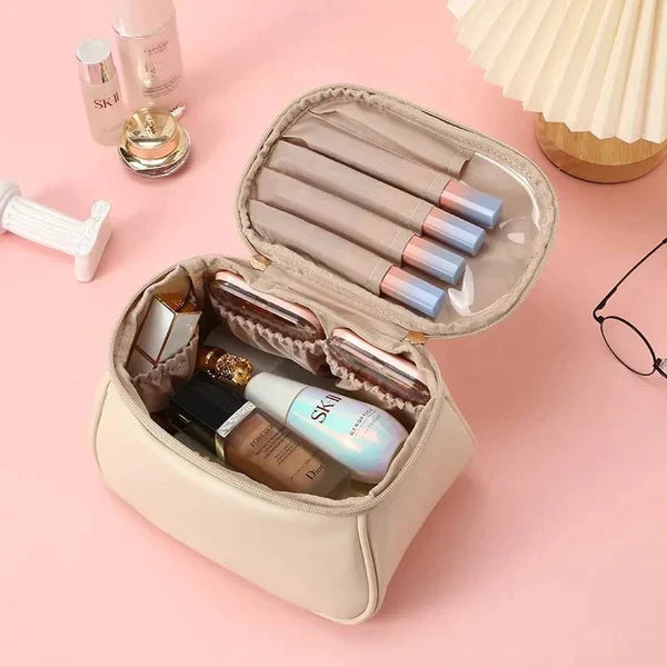 Large Capacity: The clutch boasts a generous interior with multiple compartments and pockets to accommodate your makeup brushes, cosmetics, skincare products, and more. It's spacious enough to carry your essentials, yet compact and sleek for on-the-go convenience.
