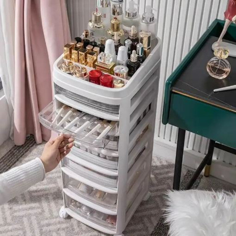 - 7-drawer large capacity ideal to store makeup such as eye-shadow, lipstick, cosmetic brush, cream, lotion, beauty tools and other personal items art supplies, office supplies, seasonal holiday decorations and more. A beauty cart with enough storage space.