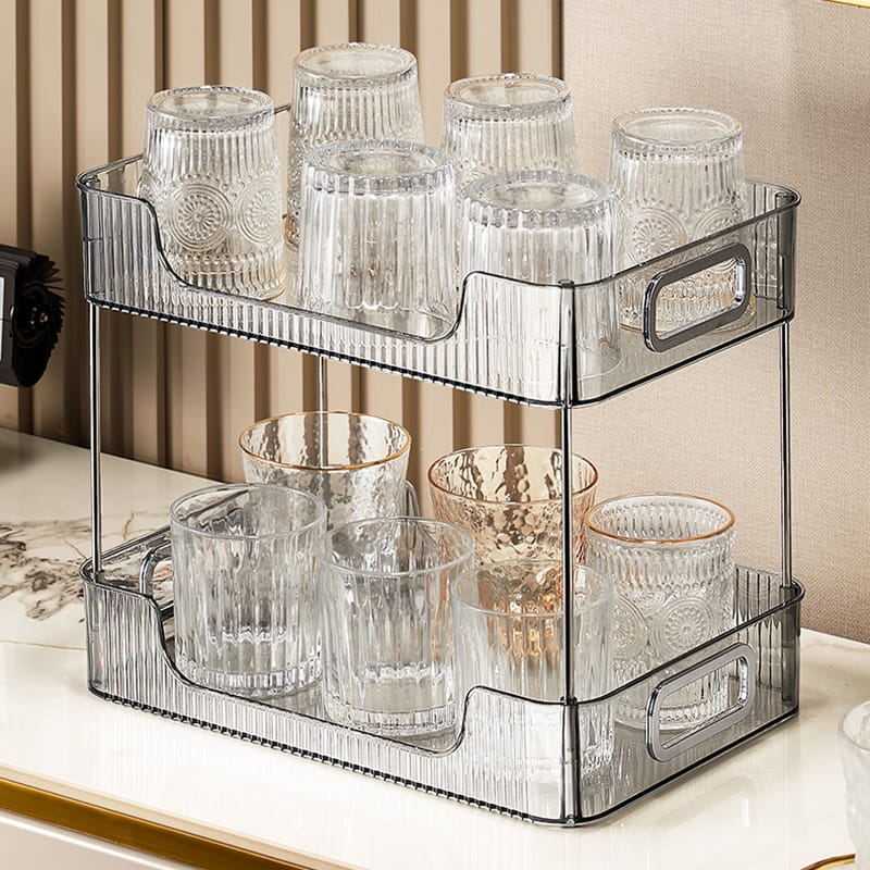 1. Made of durable shatter-resistant transparent plastic, with strong stainless steel sticks between 2 tiers, which can withstand heavy objects and remain stable and prevent the shelf from rusting in wet places. It's easy to clean and water-proof.
