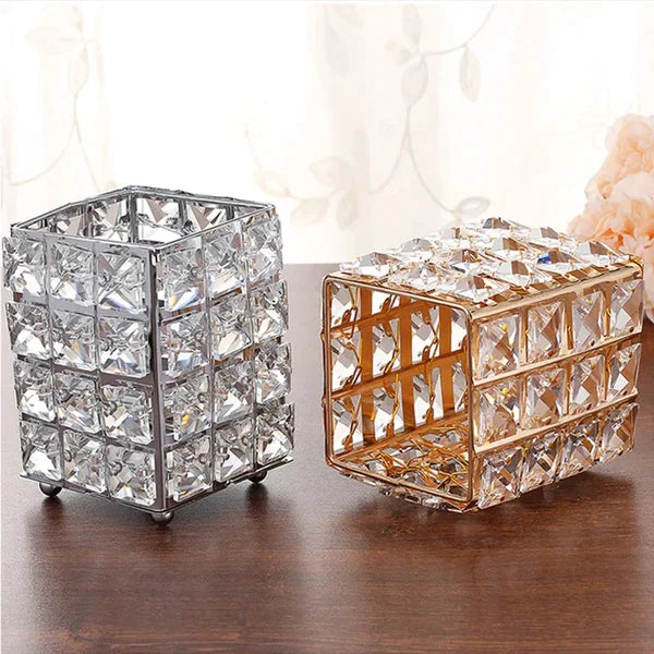 Specifications: Height: 115mm, Diameter: 95mm Perfect for storage Nail Brush & Cosmetic Tools Material: Stainless Steel with Plating and Crystal
