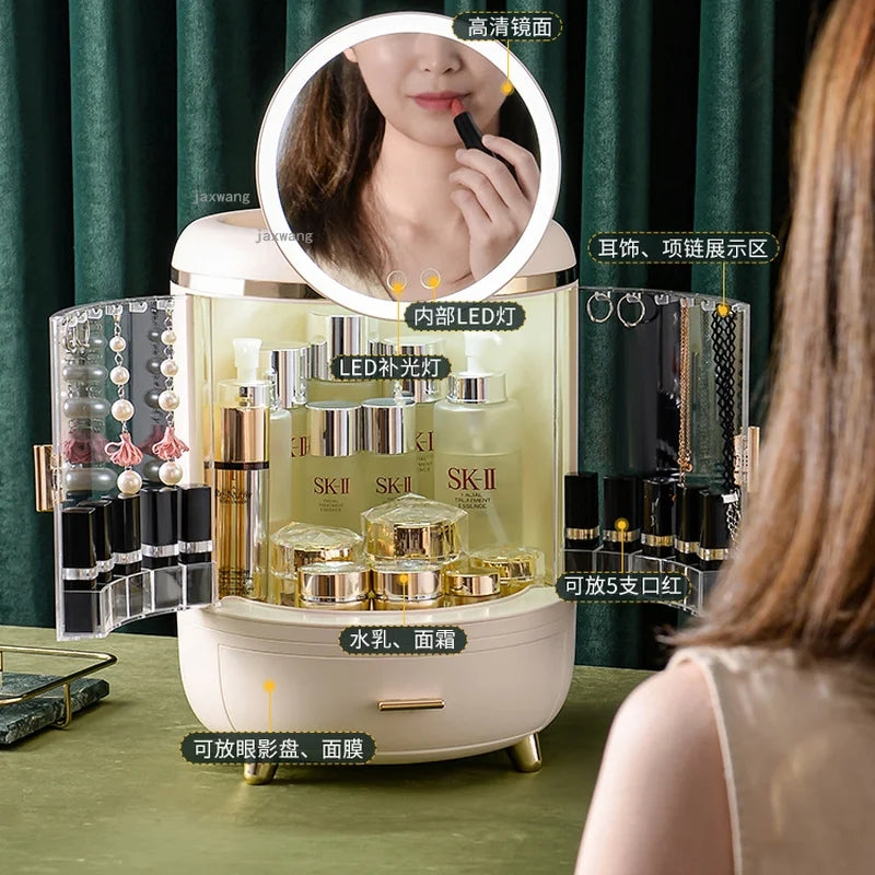 Discover Luxury in Organization: Double Door Cosmetic Organizer with LED Mirror