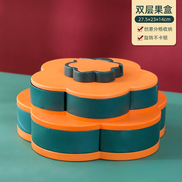 Double layer rotating light luxury fruit tray household multi-functional creative lattice melon seeds candy snack dry fruit box