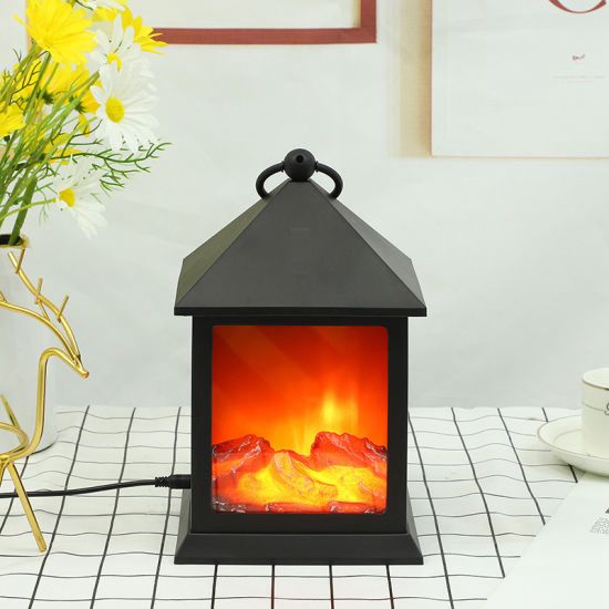 Fireplace Lantern Super Bright LEDs 6 Hours Timer Battery Operated, Plastic Hanging Sitting Decoration Indoor & Outdoor Use LED Fireplace Lamp