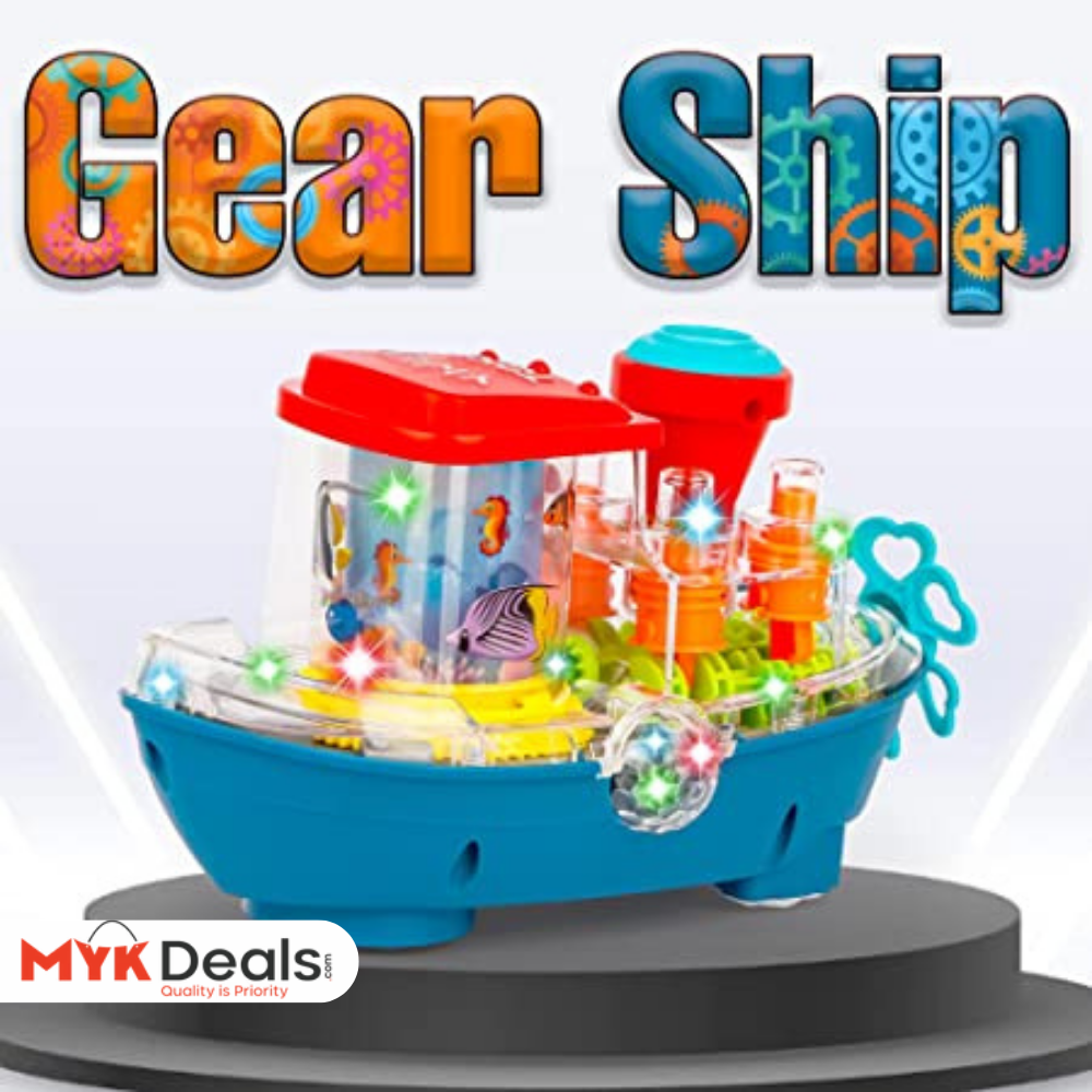Gear Land Ship, Musical Toy Boat with Colorful Light, Transparent Rotatable Concept Boat, Underwater World Cruise Ship Toy For Kid, Battery Operated Toy Boat with Rotating Fishing Lamp Toy, Children's Toy Boat
