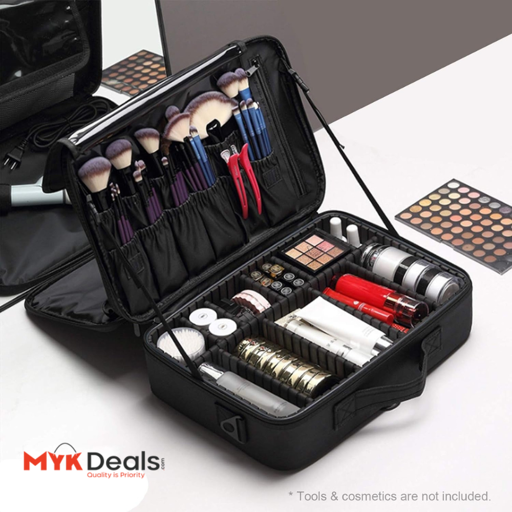 Professional Travel Makeup Bag, Portable Cosmetic Bag With Adjustable Dividers, Makeup Suitcase For Women