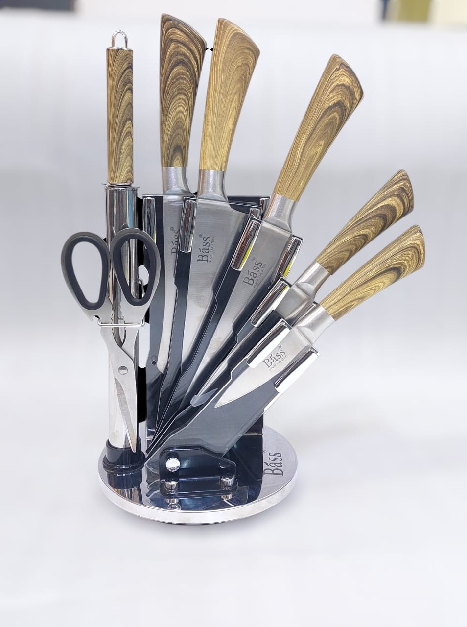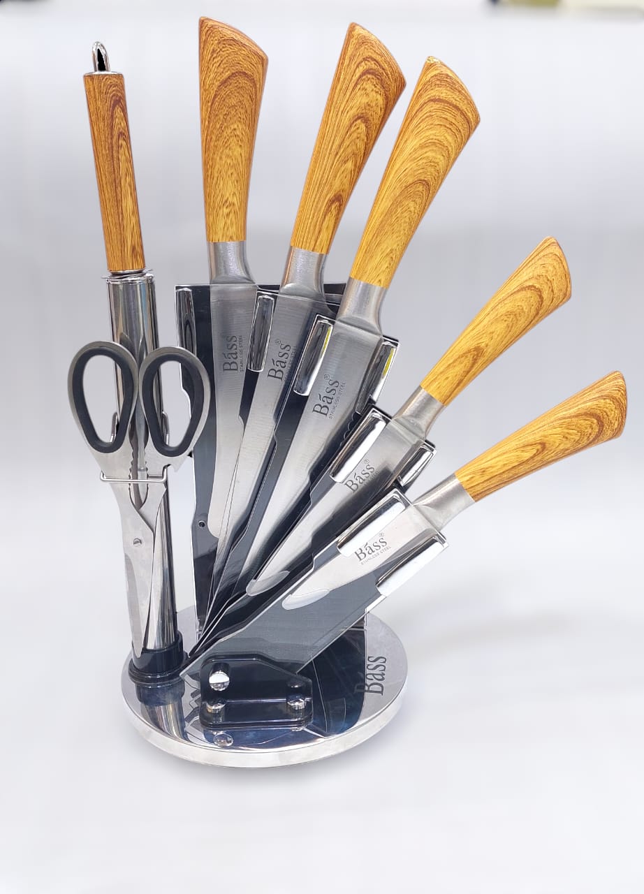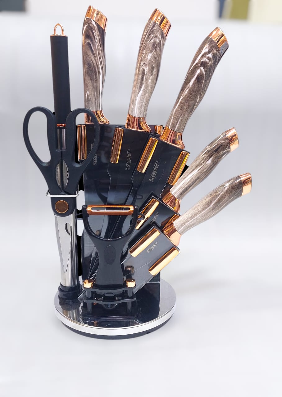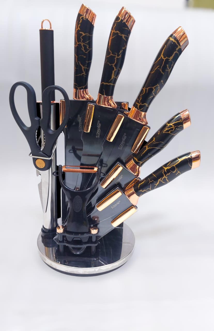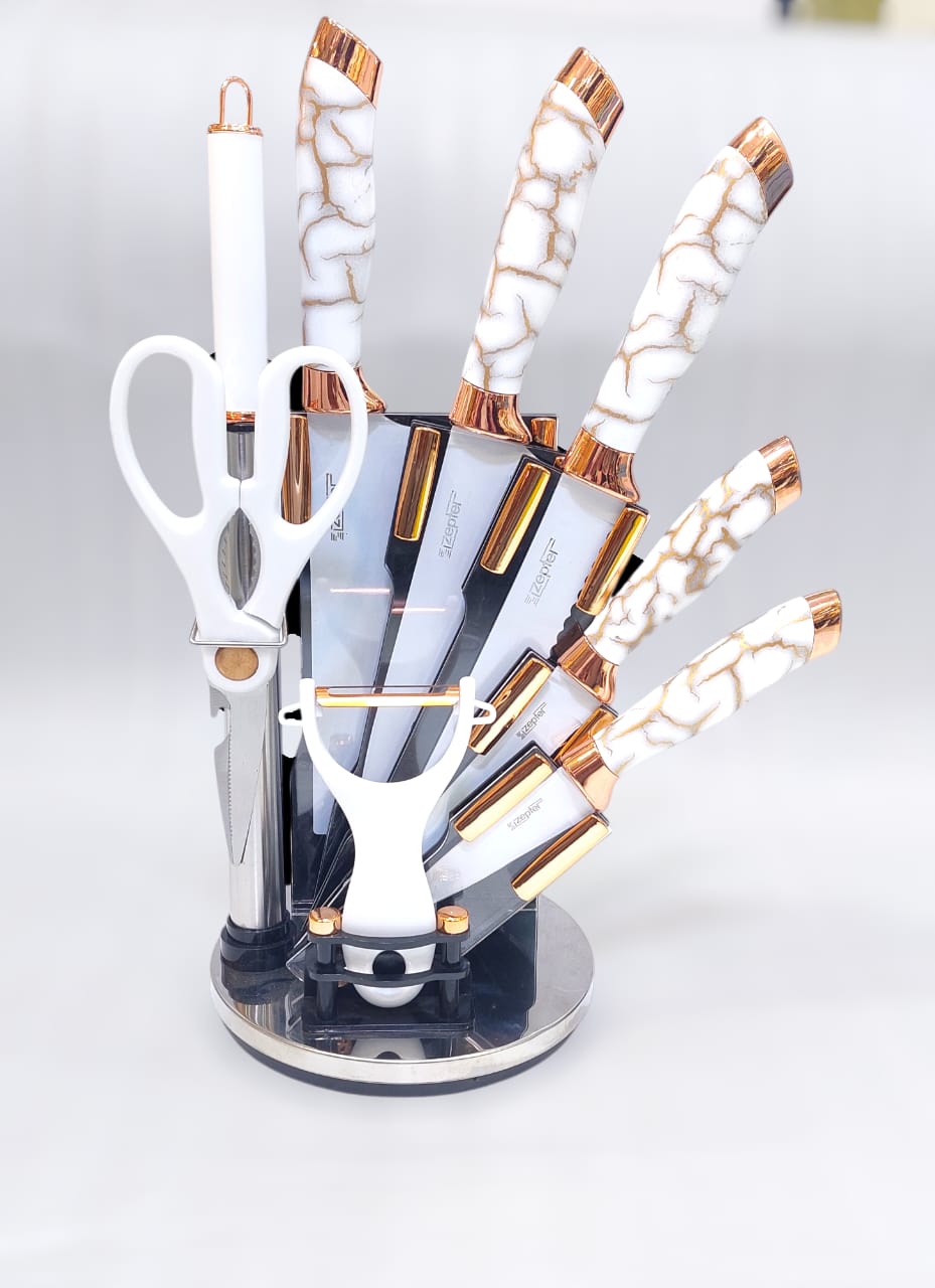 Luxury 8-Piece Knife Set with Stand - Marble/Wooden Texture Design