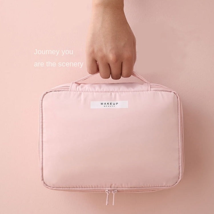 Portable Design: With a convenient top handle, this makeup bag is easy to carry wherever you go. It's ideal for vacations, business trips, or simply for everyday use.