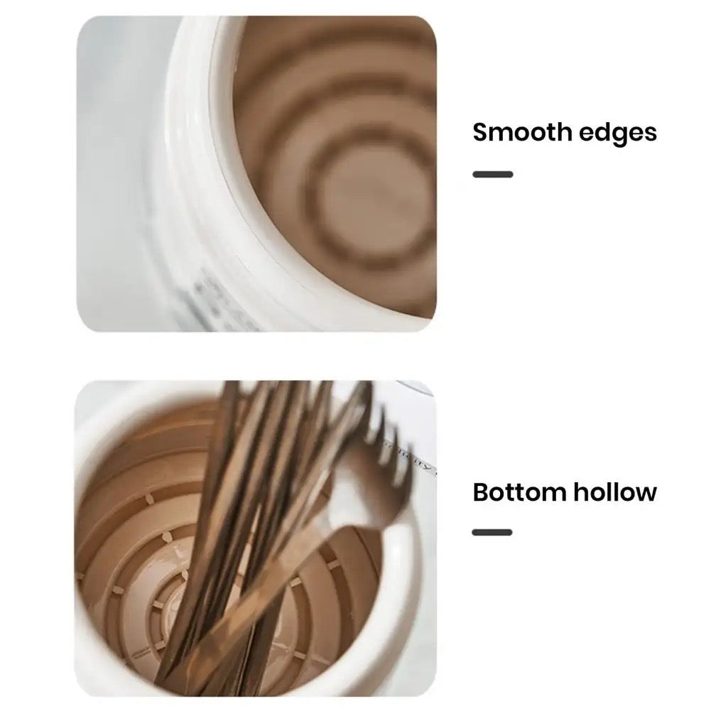 This utensil holder occupies a minimum space on the countertop and can be used for a dining table, dining room, patio or where necessary. It is equipped with drainage holes to avoid internal water accumulation, allowing the utensils to dry quickly. Due to the presence of the base, it does not wet the counter. Simply regularly pour the water from the base. It is equipped with a lid, there is no need to worry about dust, insects, etc. dirty the utensils inside. It's is made of polypropylene and PS, which is safe, durable and not easy to break.