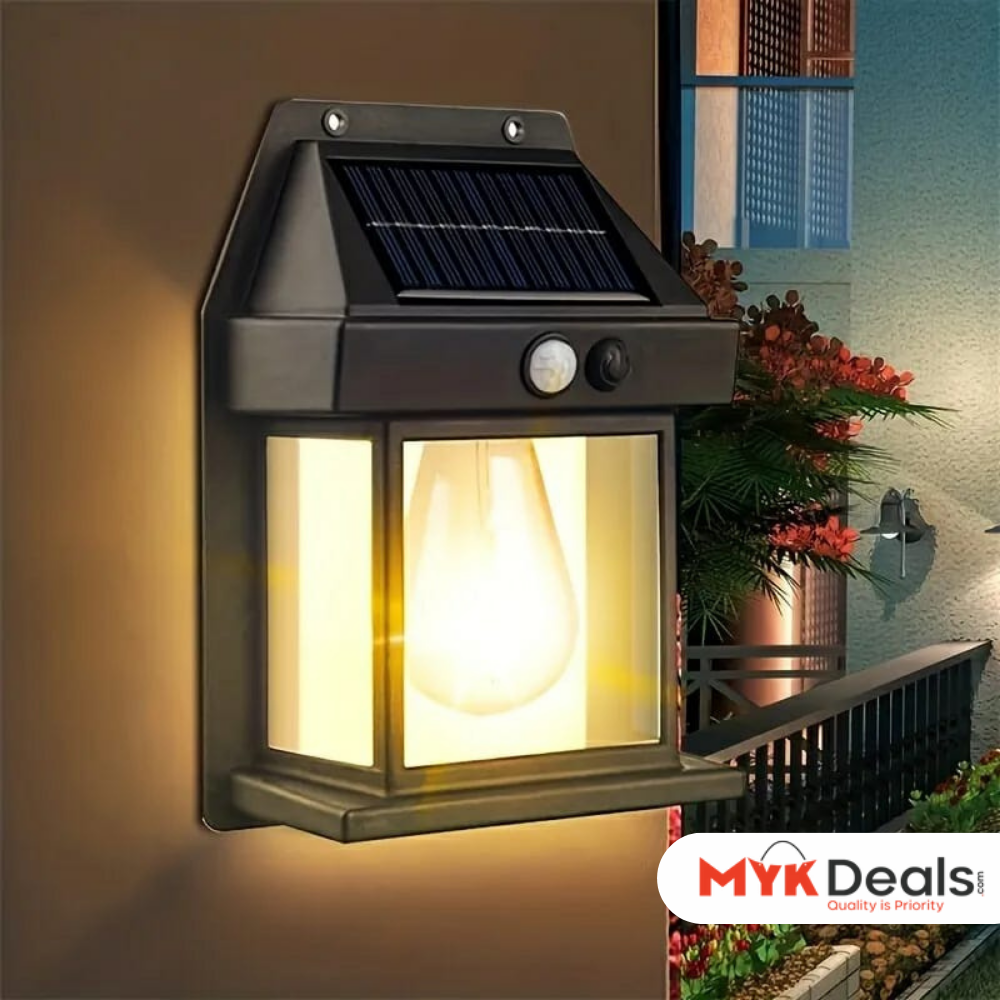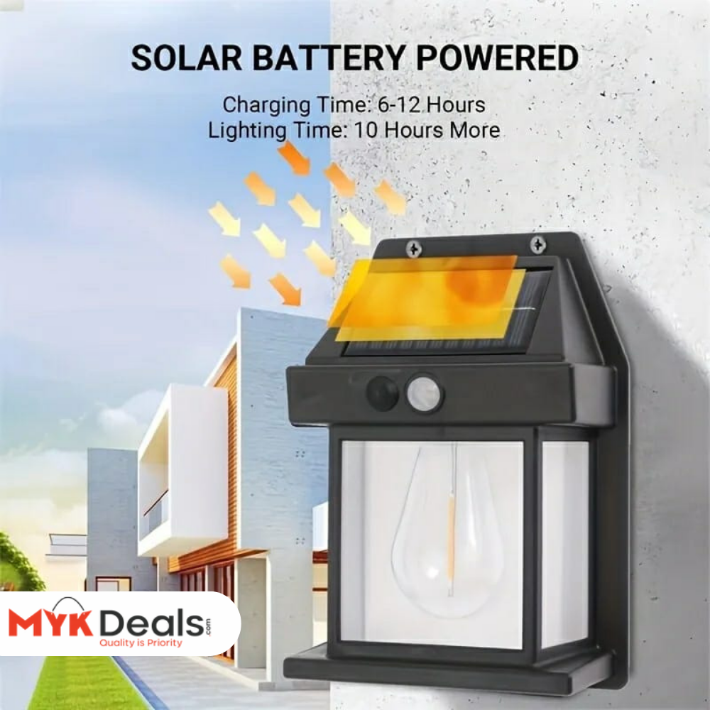 This solar wall light uses a monocrystalline silicon solar panel that quickly absorbs sunlight and converts it into electricity, making it bright and quick to recharge. It can absorb enough energy in a day to give a bright glow for long hours at night, so. It has three modes: motion sensor mode, micro-bright mode and constant light mode. It can meet the needs of a variety of scenes, suitable for outdoor patio, porch, garden, yard, barn, garage, wall and fence. It has built-in 1200mAh battery, absorbing the sun's rays during the day and automatically turning on the light at night without consuming electricity. Charge for 6 - 12 hours, continuous lighting for more than 10 hours. The outdoor wall light with built-in dusk to dawn motion sensor, bigger and brighter lighting range, 120° sensing angle, sensing distance 16-26 feet (5-8 meters). It is made of durable ABS material with IP65 waterproof rating, which can withstand high temperature, rain, snow and other harsh weather, ensuring the performance of the battery and filament bulb. It can be charged in direct sunlight without wires or adapters. Use the included screws to attach the solar wall light to an exterior wall made of metal, wood or plastic.