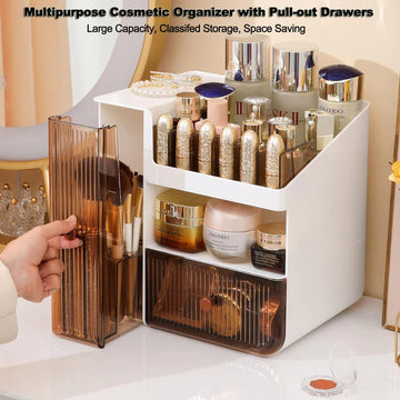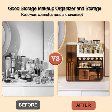 Organize your cosmetics with ease using our Transparent And Visible Cosmetic Organizer. Its clear design allows you to easily see and access your products, saving you time and hassle. With this organizer, you can efficiently store and display your makeup collection, keeping your vanity clutter-free.
