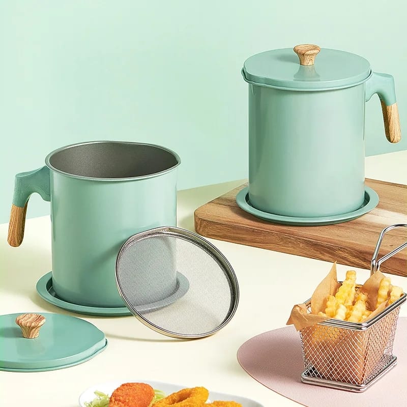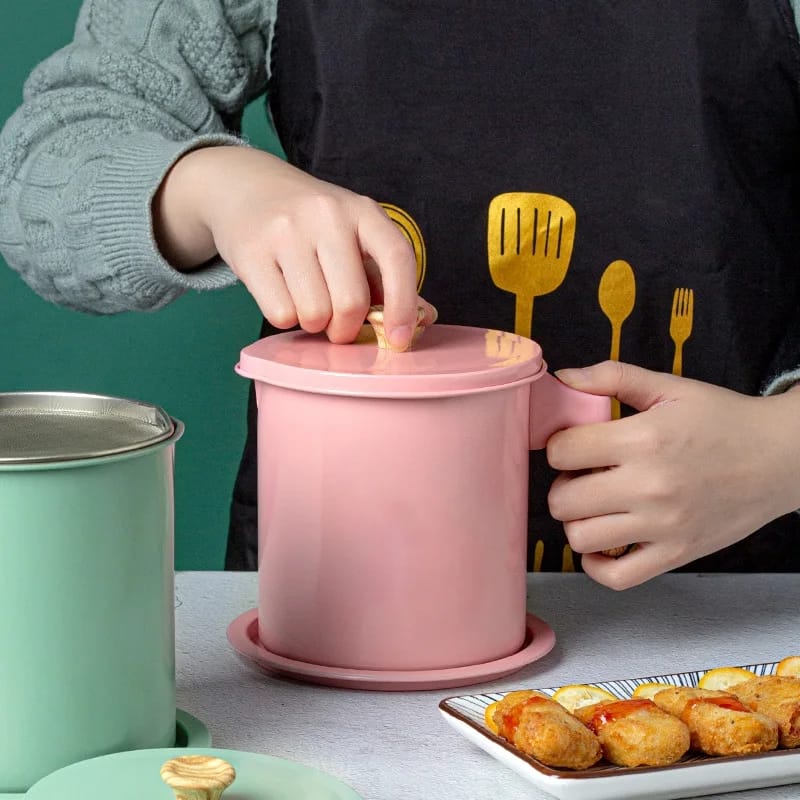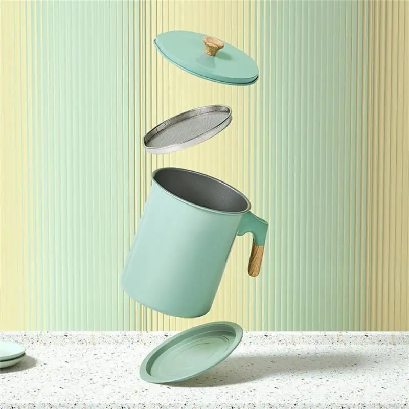 - MULTIPURPOSE: With this oil pot, you can strain and store flavorful cooking oil, coconut oil, pan grill, bacon grease, fat, frying oil, hot oil and so on. Non-Stick design. The pot lid keeps your cooking oil clean for daily use. Bright colors will light up your kitchen.