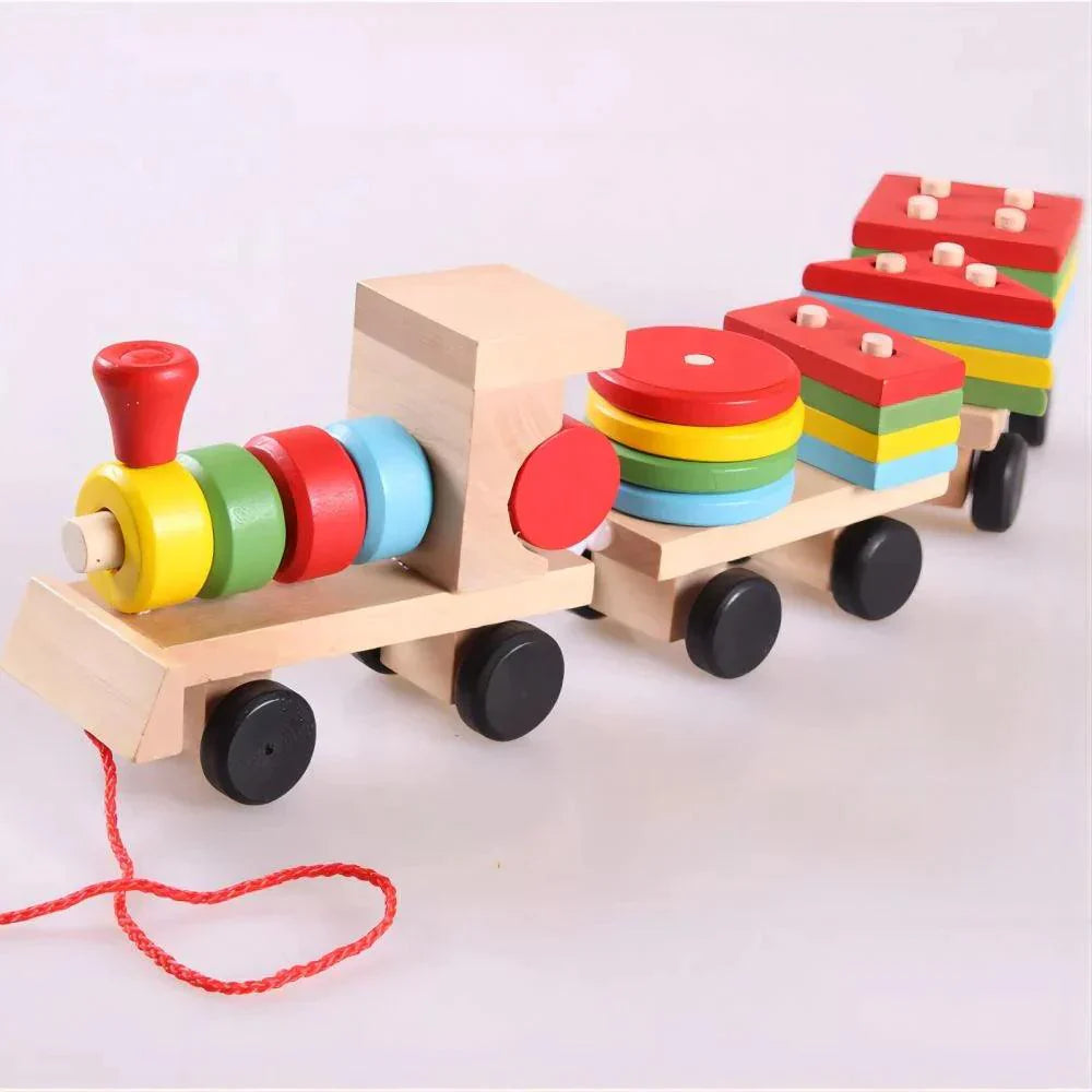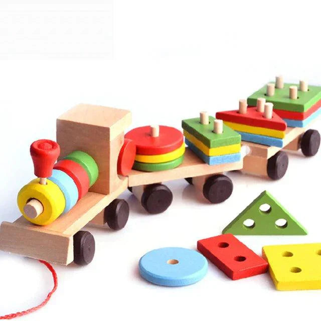 The toy Train helps develop areas like motor skills, sorting, shape recognition, and creative thinking.